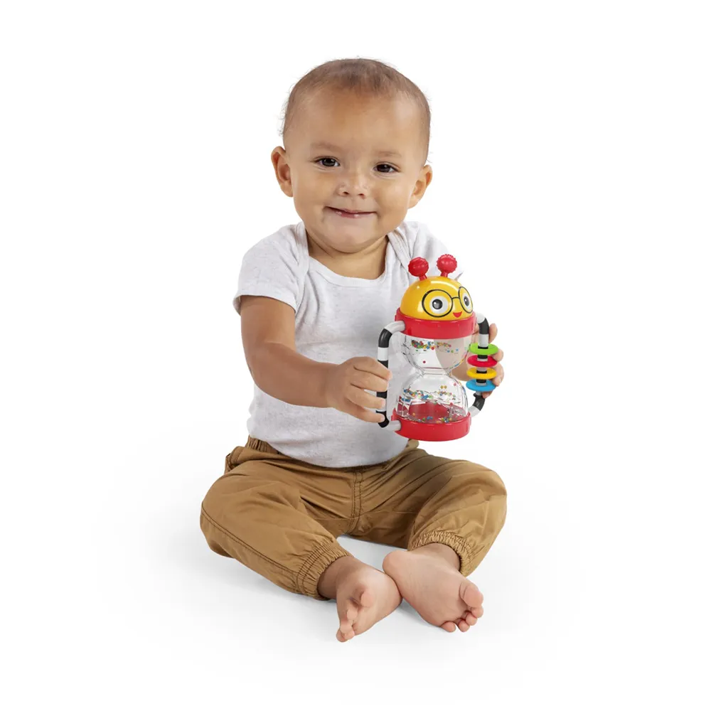 Baby Einstein Cal’s Sensory Shake-up Aktivitetsskallra är en mångsidig leksak som stimulerar barnets sinnen och främjar viktiga utvecklingssteg. Med fem olika sensoriska funktioner får barnet möjlighet att utforska nya texturer, utveckla finmotoriken och förstå orsak och verkan. Barnet kan känna på de mjuka strukturerna på Cal’s antenner eller skaka timglaspärlorna för att skapa skallrande ljud.