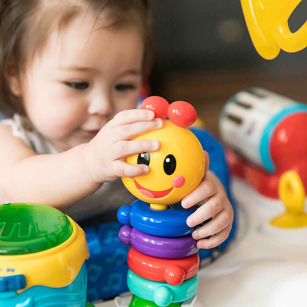 Låt musiken bli din babys musa och förvandla din lilla från en lyssnare till en artist! Denna hoppgunga gör musiken till ett multisensoriskt äventyr. Små händer kan slå på de elektroniska bongotrummorna och aktivera ljus, ljud och flera språk. Snurra pianot för överraskande ljud, och spela på gitarren för att se färgglada pärlor dansa och hoppa. Med tamburinens spegel kan din baby få en front row-upplevelse av sin egen show. Baby Einstein’s älskade hoppgunga roterar 360° så att din lilla musiker kan växla mellan aktiviteter och utforska sitt eget musikaliska universum.