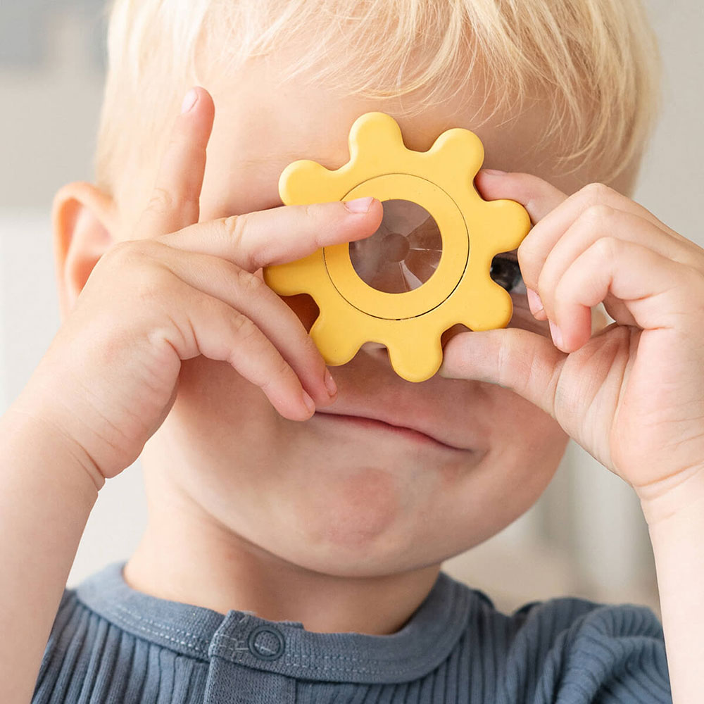 - Stimulerande element som en spegel, en skallra och en kalejdoskopisk lins