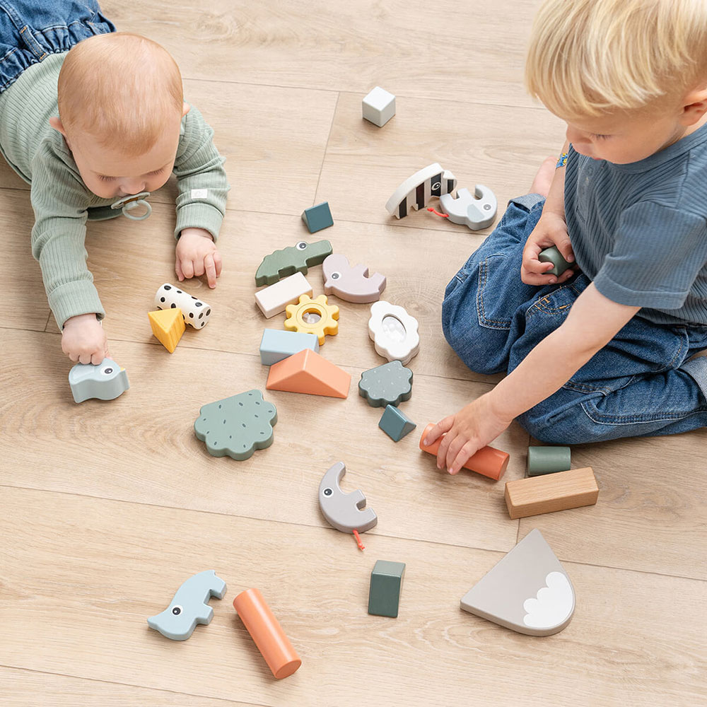 - De olika formerna och färgerna bjuder in ditt lilla barn att använda sin fantasi, skapa berättelser och bygga fantastiska världar