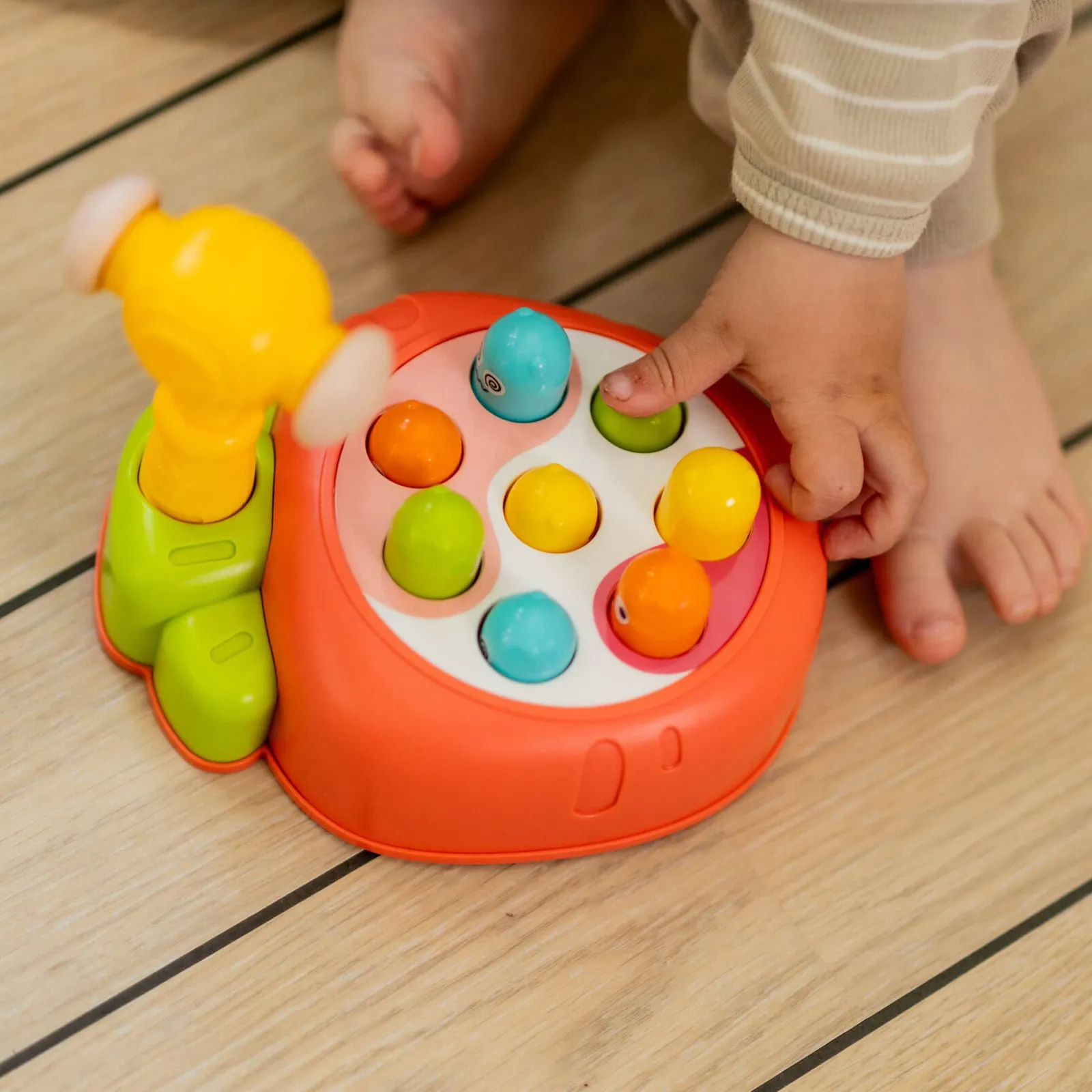 Upplev en spännande och nytolkad version av det klassiska arkadspelet med detta roliga Whack-a-Mole-spel från Scandinavian Baby Products! I detta färgglada spel får ditt barn chansen att slå de åtta fräcka mullvadarna med sin hammare, men skynda dig – dessa mullvadarna är snabbare än vad man tror!