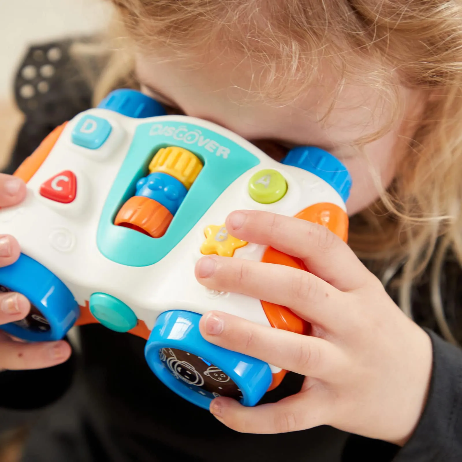 Baby Telescope från Scandinavian Baby Products är en riktig äventyrskamrat för de små! På kvällen förvandlas teleskopet till en magisk nattlampa med charmiga illustrationer som lyser upp barnrummet. Genom att snurra på hjulen upptill kan barnet utforska spännande djurläten, glada melodier och roliga ljudeffekter. En perfekt kombination av lek och upptäckt!