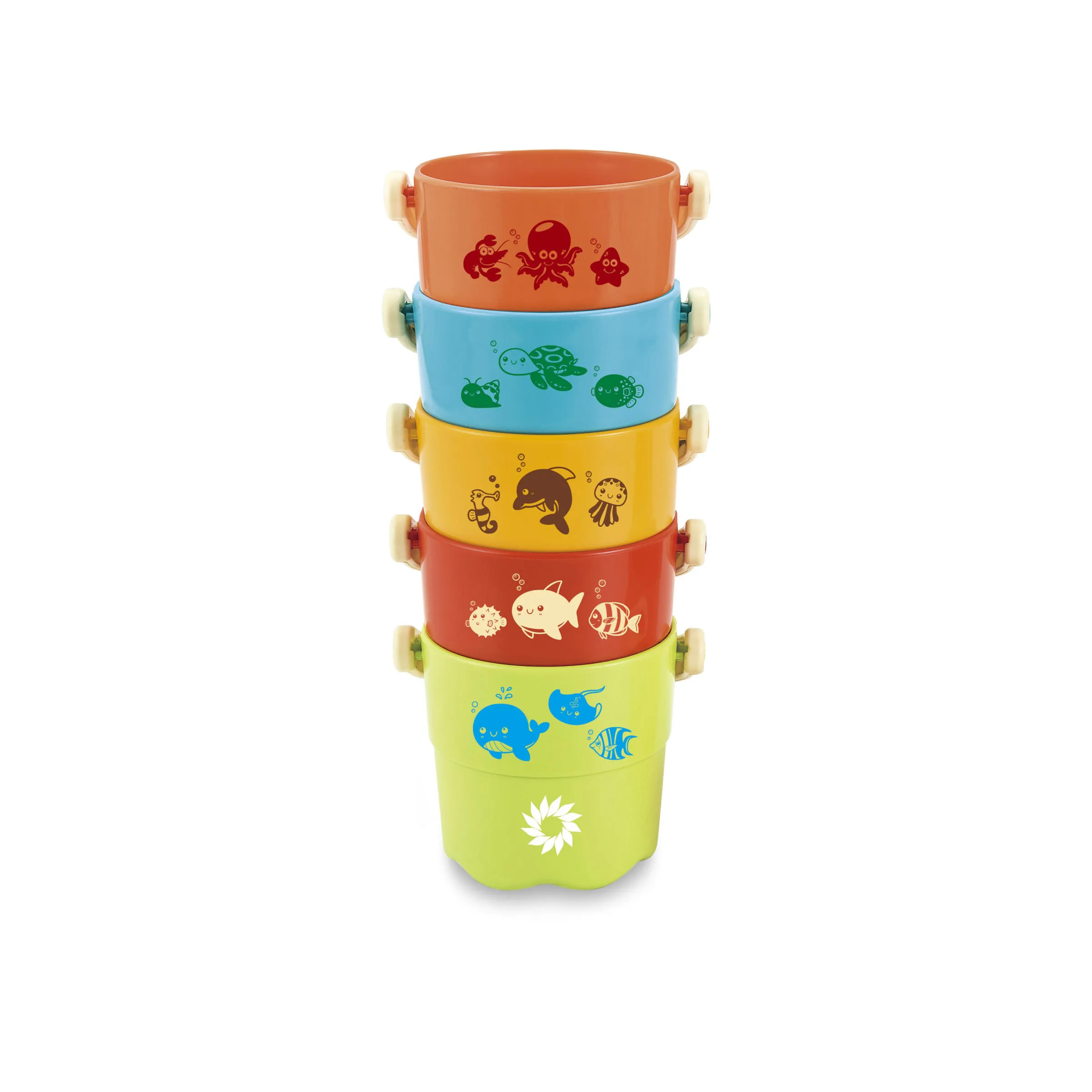 Oavsett om det är hemma, i sandlådan eller i badkaret, stimulerar dessa stapelkoppar ditt barns motoriska färdigheter och visuella upplevelse. Tillverkade i säkra material, 100 % fria från BPA, PVC och ftalater, och tål maskindi