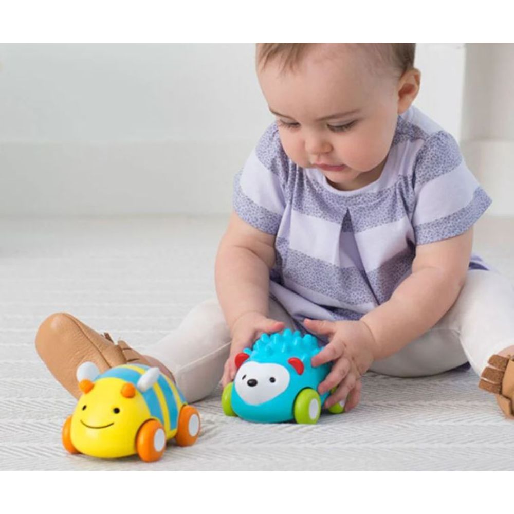 Skip Hop Leksaksbilen Bi är en miniatyrbil som bjuder på roliga inslag och lekfulla ytor, vilket kommer att inspirera ditt barn att utforska krypandets konst. Denna bedårande leksaksbil är lätthanterlig och designad för små händer. Dra bilen bakåt, släpp den och se den rulla iväg med glädjande fart.