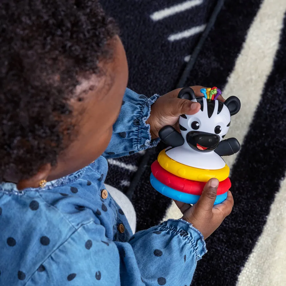 Slå, stapla, skaka, trösta och upptäck med Baby Einstein Stack & Wobble Zen Bitring Leksak. Denna färgglada vippande leksak hjälper till att utveckla barnets förståelse för orsak och verkan. De färgglada ringarna är texturerade för att lindra ömma tandkött och samtidigt stimulera barnets tidiga sensoriska förmågor.