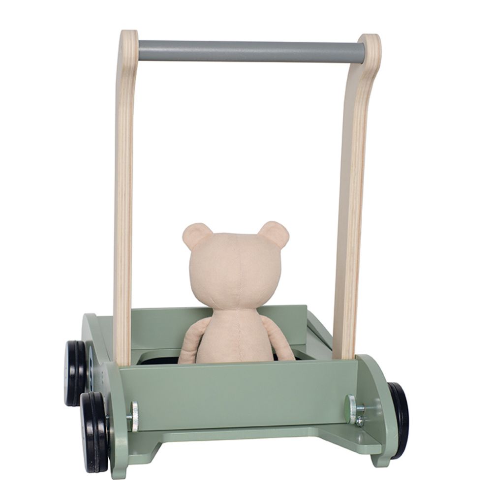 Lära-gå-vagnen från Jabadabado är den idealiska följeslagaren när det är dags att ta dina allra första steg. Vagnen är formad som en charmig liten bil och den omtyckta karaktären Teddy eller Bunny är redo att följa med dig på alla dina äventyr. Vagnen erbjuder stadigt och säkert stöd, även för de allra minsta barnen som precis börjar lära sig gå, tack vare den justerbara bromsen på båda bakhjulen. Dessutom har den en smart inbyggd förvaring, eftersom locket enkelt kan tas av och avslöjar det perfekta gömstället för alla dina favoritleksaker. Den mjuka pastellfärgen gör att vagnen blir en vacker detalj i barnrummet. Hjulen är försedda med gummilister, så de rullar smidigt på alla typer av underlag utan att lämna märken efter sig. Lära-gå-vagnen är en mycket uppskattad present som kommer att ge lekglädje under lång tid framöver och den passar perfekt som dopgåva eller till den första födelsedagen. Vagnen levereras omonterad med tydliga monteringsinstruktioner.