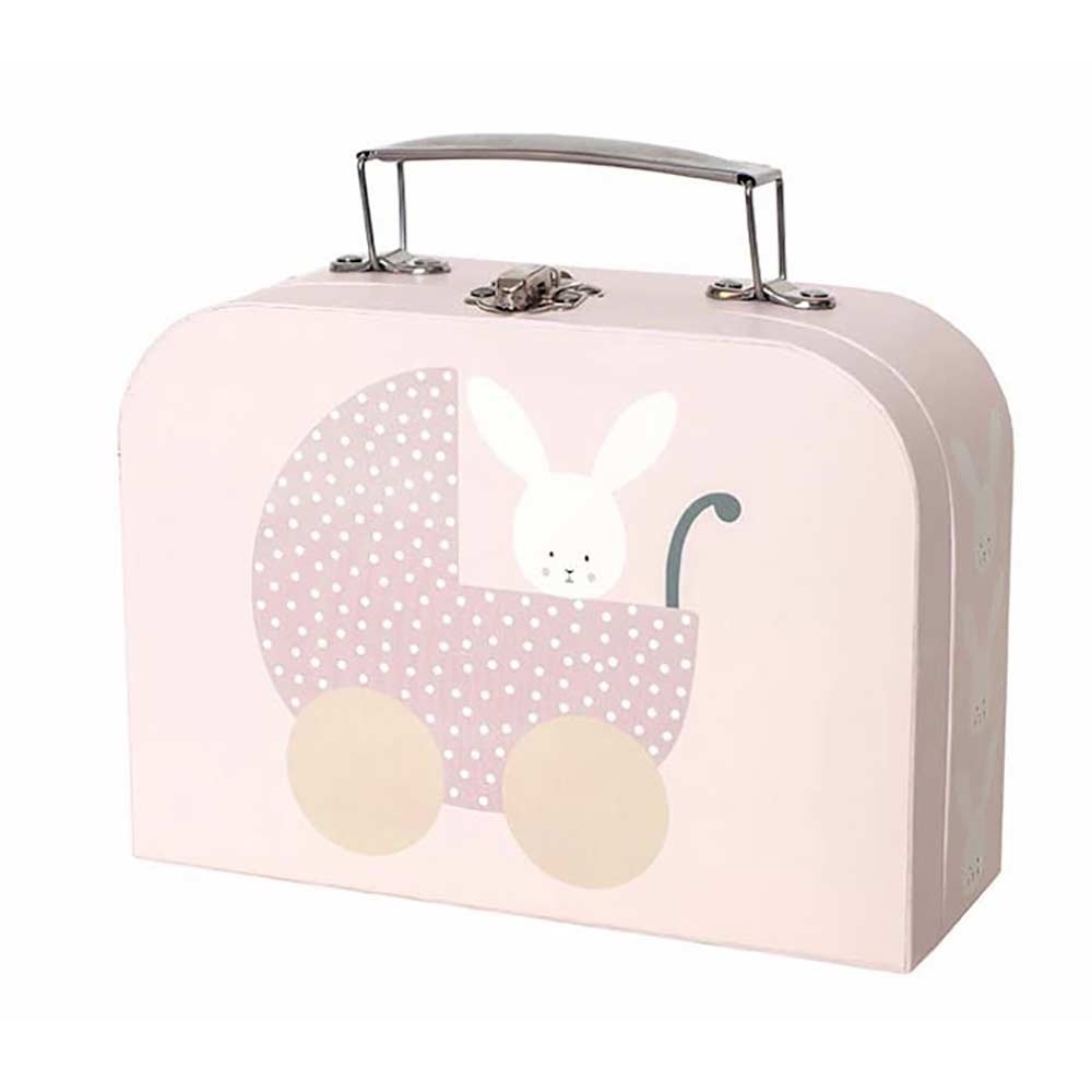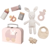Söt babyväska med en gullig kanin för alla små barn som gillar djur. Kaninen kommer i en praktiskt pappväska i rosa med en massa roliga tillbehör. Nu kan du sköta om din lilla kanin nästan som om det vore en riktig liten bebis. Du kan sätta på haklappen och mata den med välling och därefter kanske byta blöja.