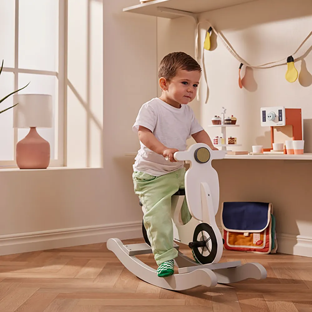 En gungscooter i FSC-certifierat trä för barn som älskar fart och fläkt. Scootern har tippsäkra skenor och stadiga handtag att hålla sig fast i.  Perfekt som dop- eller födelsedagspresent.