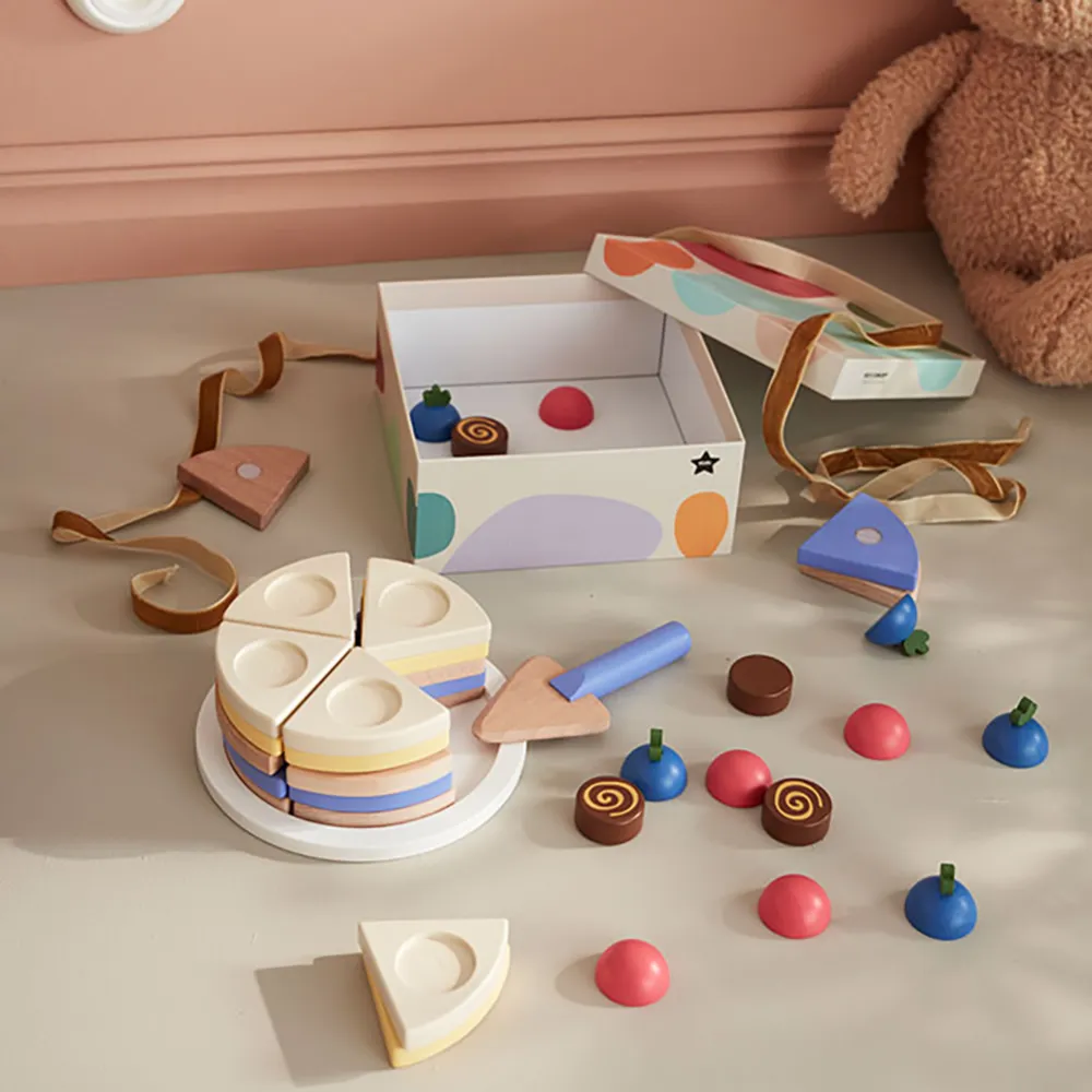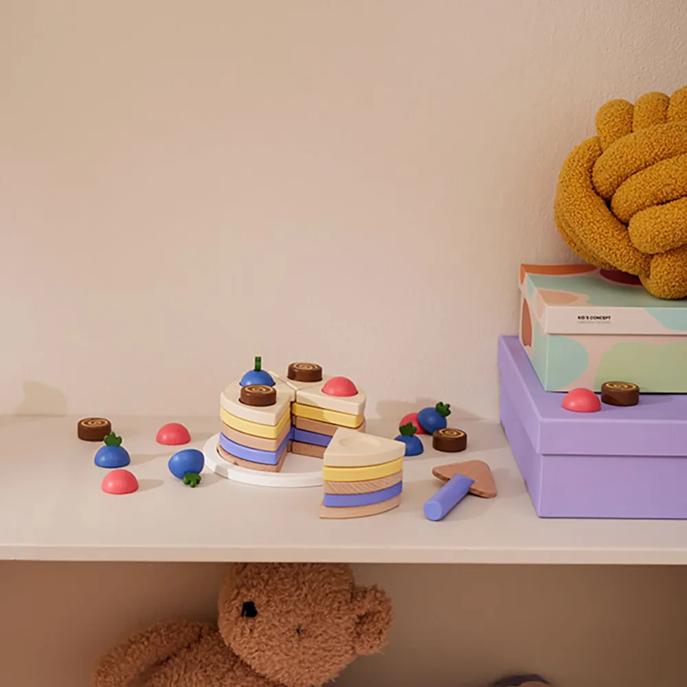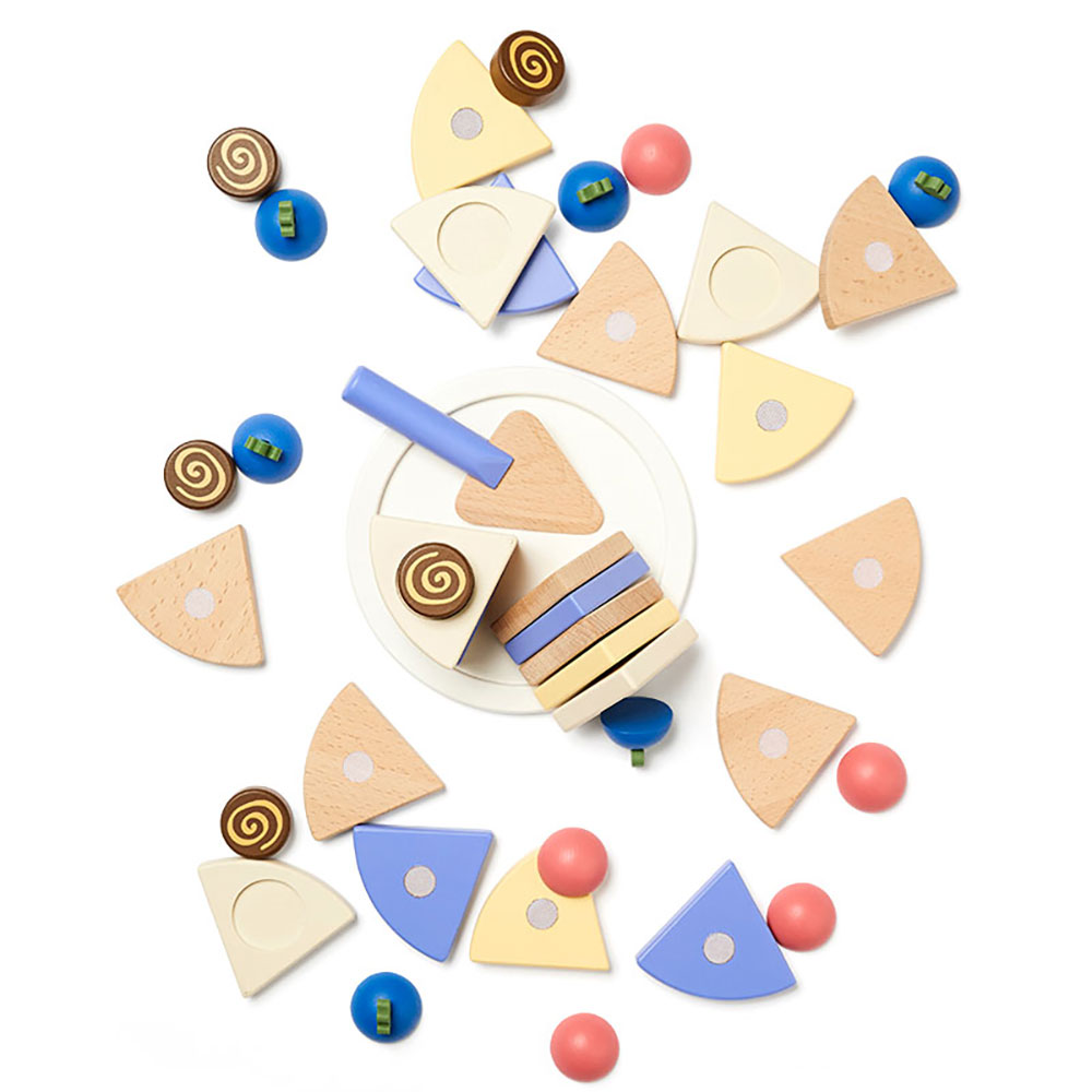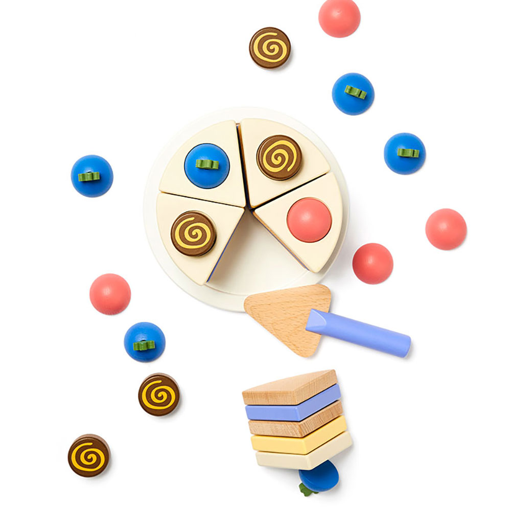 Skapa din egen drömtårta med fem lager! Bygg den lager för lager med vispad grädde, blåbärsmousse och vaniljfyllning. Tack vare kardborren mellan lagren är det enkelt att sätta ihop och ta isär tårtan när du vill. Dekorera med choklad, blåbär och godis för att göra den extra festlig. Tårtan är tillverkad av FSC-certifierat trä, vilket garanterar hållbarhet och kvalitet.
