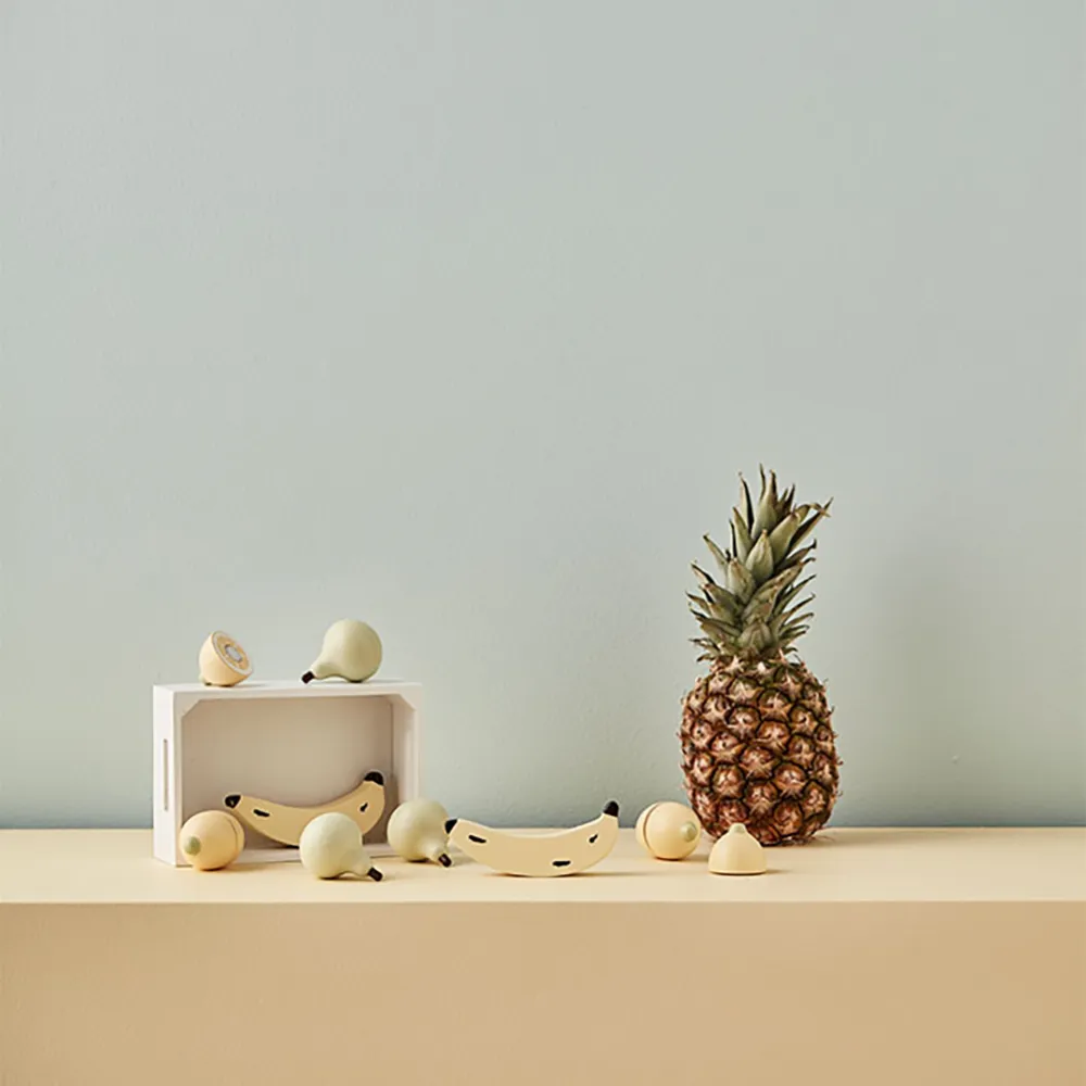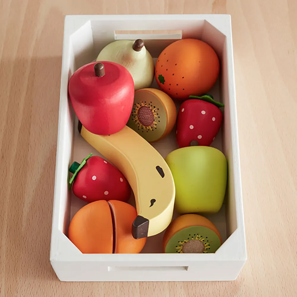 Ge liv åt lekstunderna med vår vita fruktlåda fylld med härliga träfrukter! Perfekt för att komplettera övriga produkter i vårt KID'S HUB-koncept, blir den en fantastisk del av leksaksköket, affären, kiosken eller cafét.