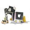 Kreativ och flexibel lekvärld. Med byggbara väggar, lekplatta, magnetiska frontväggar och magneter ges barnet de rätta verktygen att lätt komma igång med utvecklande lek oavsett ålder. De enkla formerna och de abstrakta figurerna skapar förutsättningar för att enkelt bygga upp sin egen fantasivärld - liten som stor. Kanske börjar leken runt spökhuset, men efterhand kan fantasin få världen att växa och bli vad som helst?