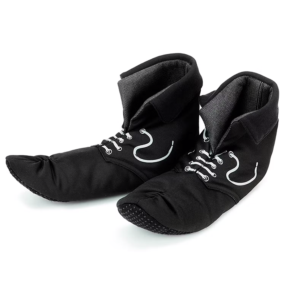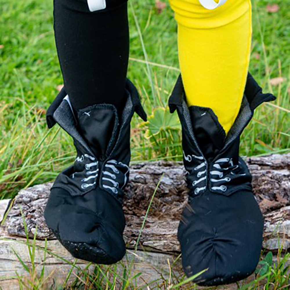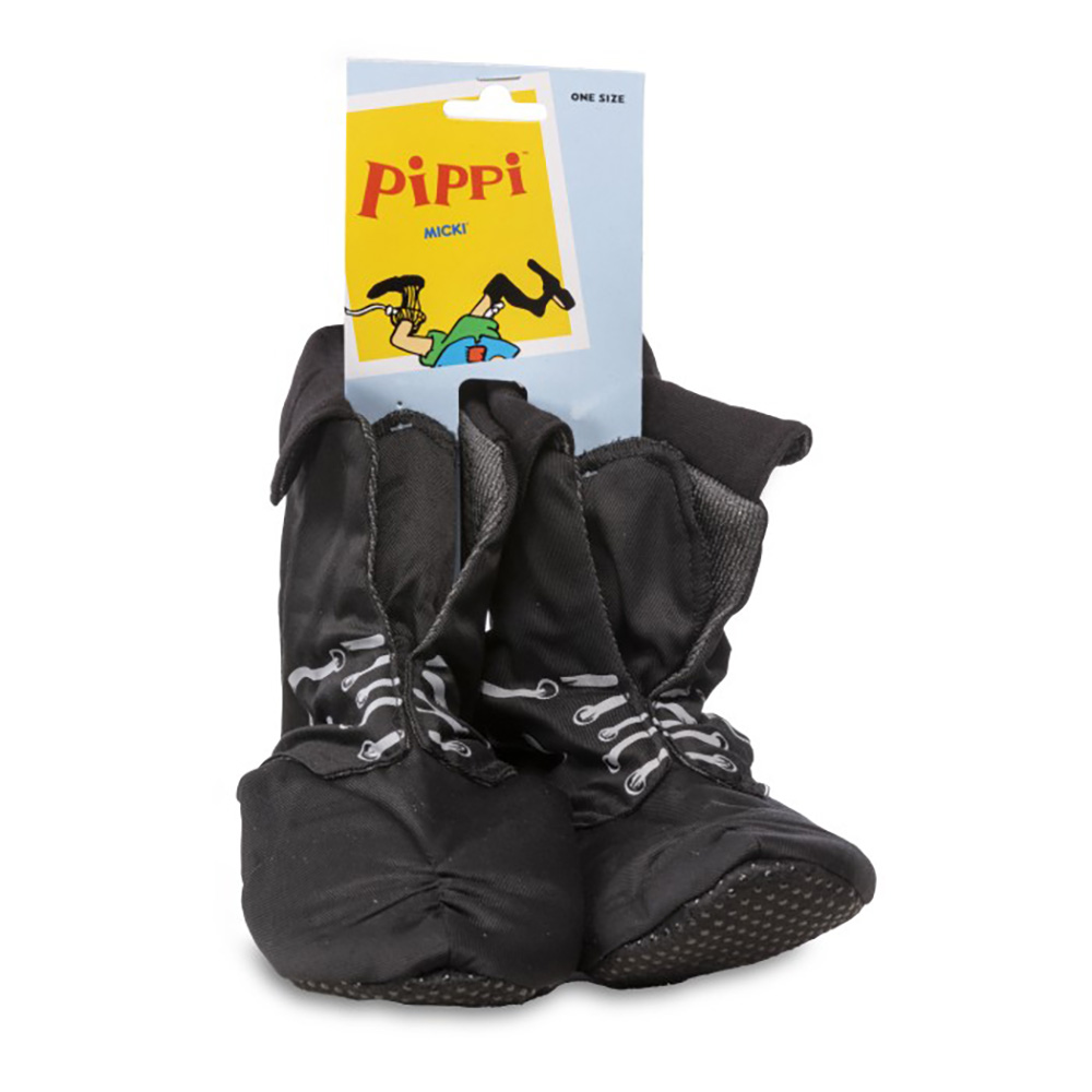 Låt barnet kliva in i Pippi Långstrumps värld med dessa underbara Pippi-kängor i mjuk lekversion! Med gott om plats för små fötter att vifta med tårna blir leken både bekväm och rolig. De tryckta snörningarna och trikåmuddarna gör att skorna är enkla att ta av och på – helt på egen hand, precis som Pippi skulle göra! Dessutom finns halkskydd på undersidan så att barnet tryggt kan hoppa och springa runt utan att halka.