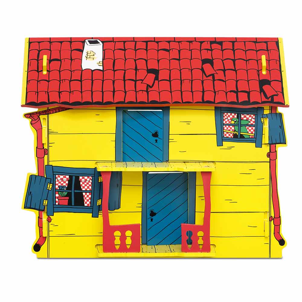 Huset är gjort av trämaterial. (Figurer och möbler köpes separat.)
