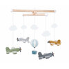 En fin sängmobil i trä som du kan hänga upp ovanför skötbordet eller sängen i barnrummet. Mönstren och färgerna på flygplanen stimulerar barnets sinnen och rörelser under dess första månader. Alla figurer är tillverkade i trä och hålls samman med snöre. För att undvika eventuell skada så avlägsna denna leksak när barnet kan nå det.