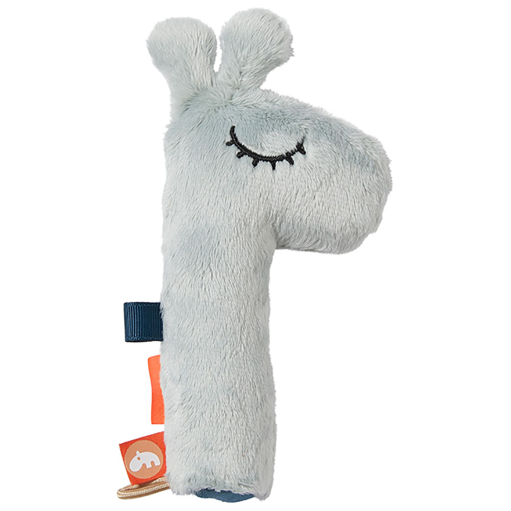 Done by Deer skallra i formen Raffi är en söt skallra med pipljud. Raffi är mysig och mjuk och är enkel att greppa för din bebis sina små händer. Raffi har en ögla som gör att den kan fästas och bli kvar på sin plats.