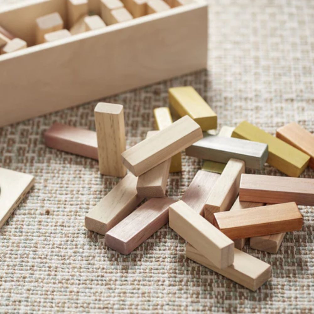 Stärker finmotoriska färdigheter och koordination mellan hand och öga. Variationerna som kan byggas är oändliga, endast fantasin sätter gränser! Med en tunn bets får varje stav sitt unika utseende. Ingår gör även en trälåda med lock för förvaring.