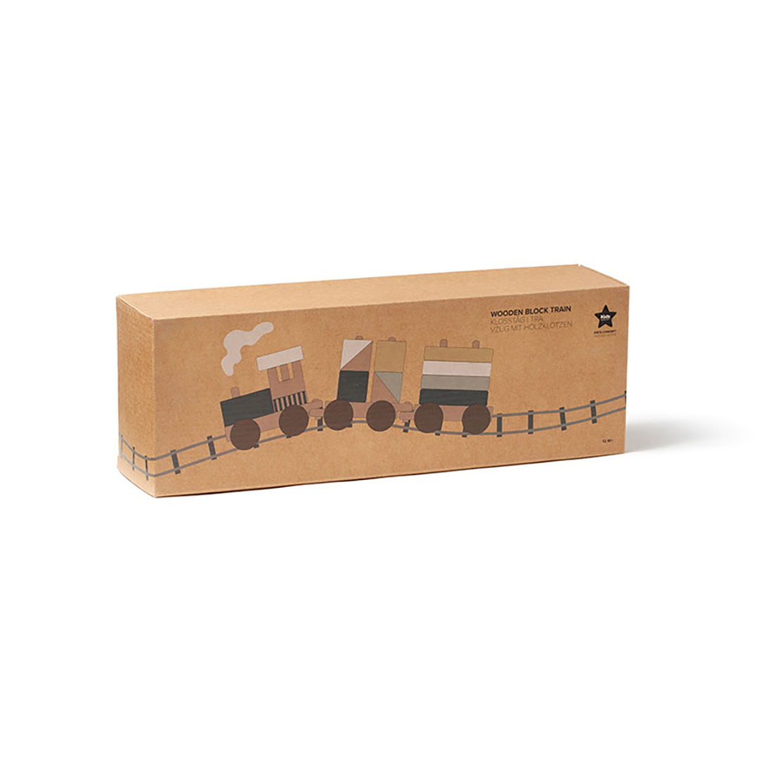 Tåget består av ett lok och två vagnar med klossar som kan staplas på vagnarna i olika kombinationer.