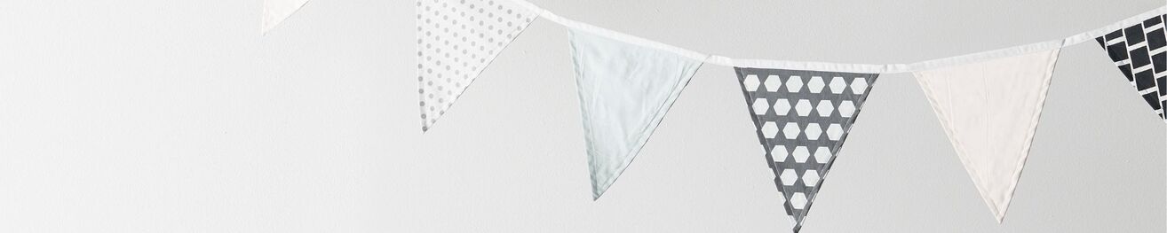 Skapa en mysig och inspirerande atmosfär i barnrummet med våra fina vimplar och girlanger! Med sina mjuka färger och lekfulla former blir de en charmig detalj som sätter pricken över i:et i inredningen. Perfekta för att rama in lekhörnan, pynta sängen eller ge kalaset en extra festlig känsla. Oavsett om du vill ha en stilren och lugn look eller en färgsprakande dekoration, har vi något som passar just ditt barns rum!
