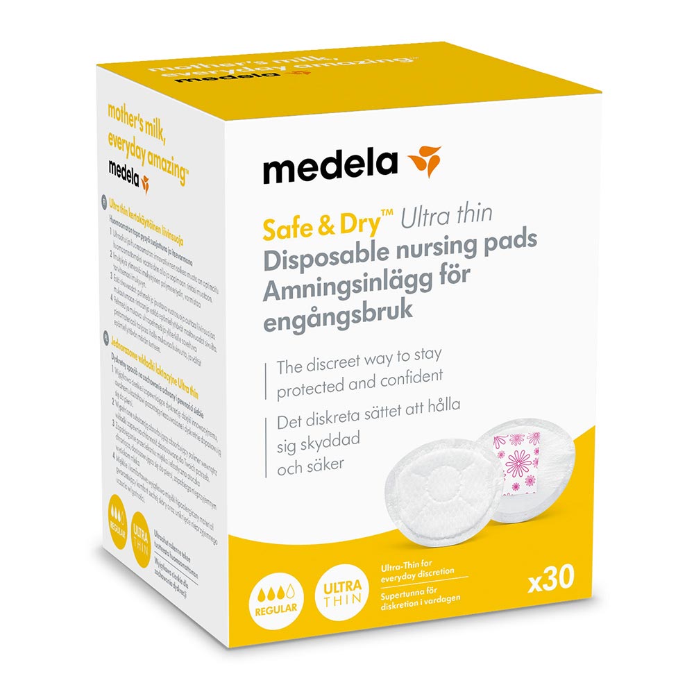Medelas amningsinlägg är tunna och diskreta inlägg för lätta till måttliga bröstmjölksläckage och är formade för att inte synas under kläder och passar bröstet på ett optimalt sätt. Amningsinläggen är för engångsbruk och har en absorberande kärna, hjälper även till att förhindra läckage från sidorna.