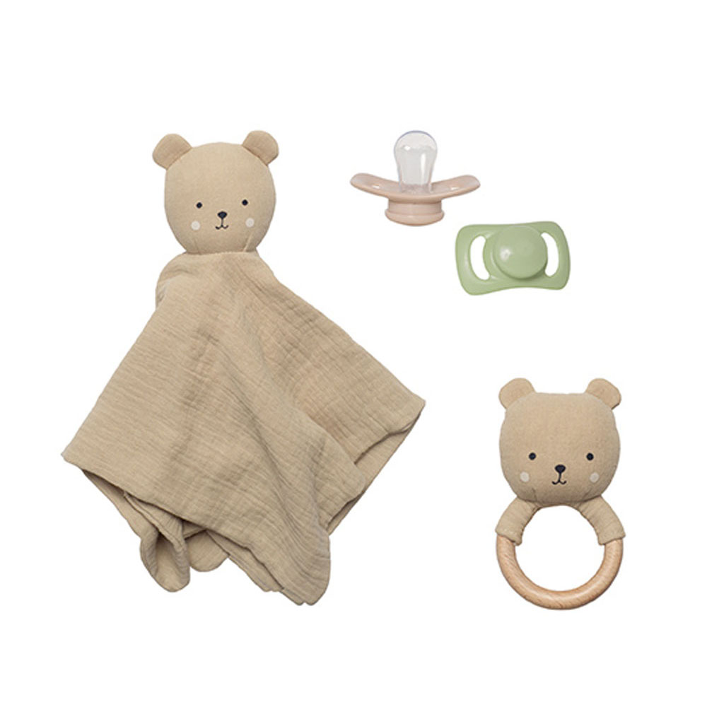 Snuttefilten, formad som en söt kanin eller nalle, är tillverkad av 100% muslinbomull. En snuttefilt är det perfekta sällskapet för en liten bebis och kan ge både trygghet och tröst. Den kan tvättas i 30 grader.