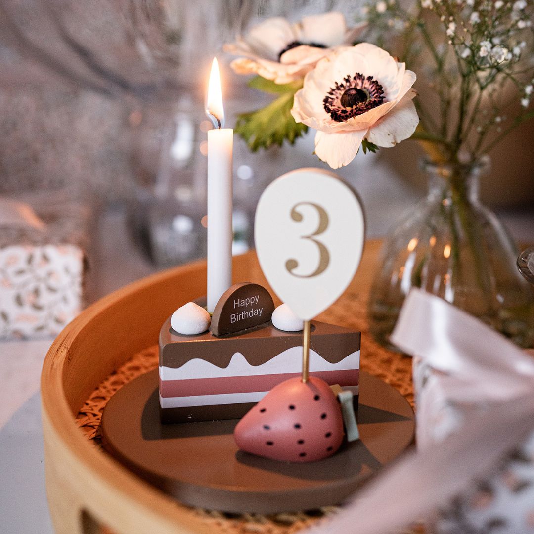 Hipp hipp hurra! Duka upp på frukostbrickan på födelsedagens morgon eller dekorera matbordet med denna vackra ljusstake i form av en tårtbit eller söt elefant.