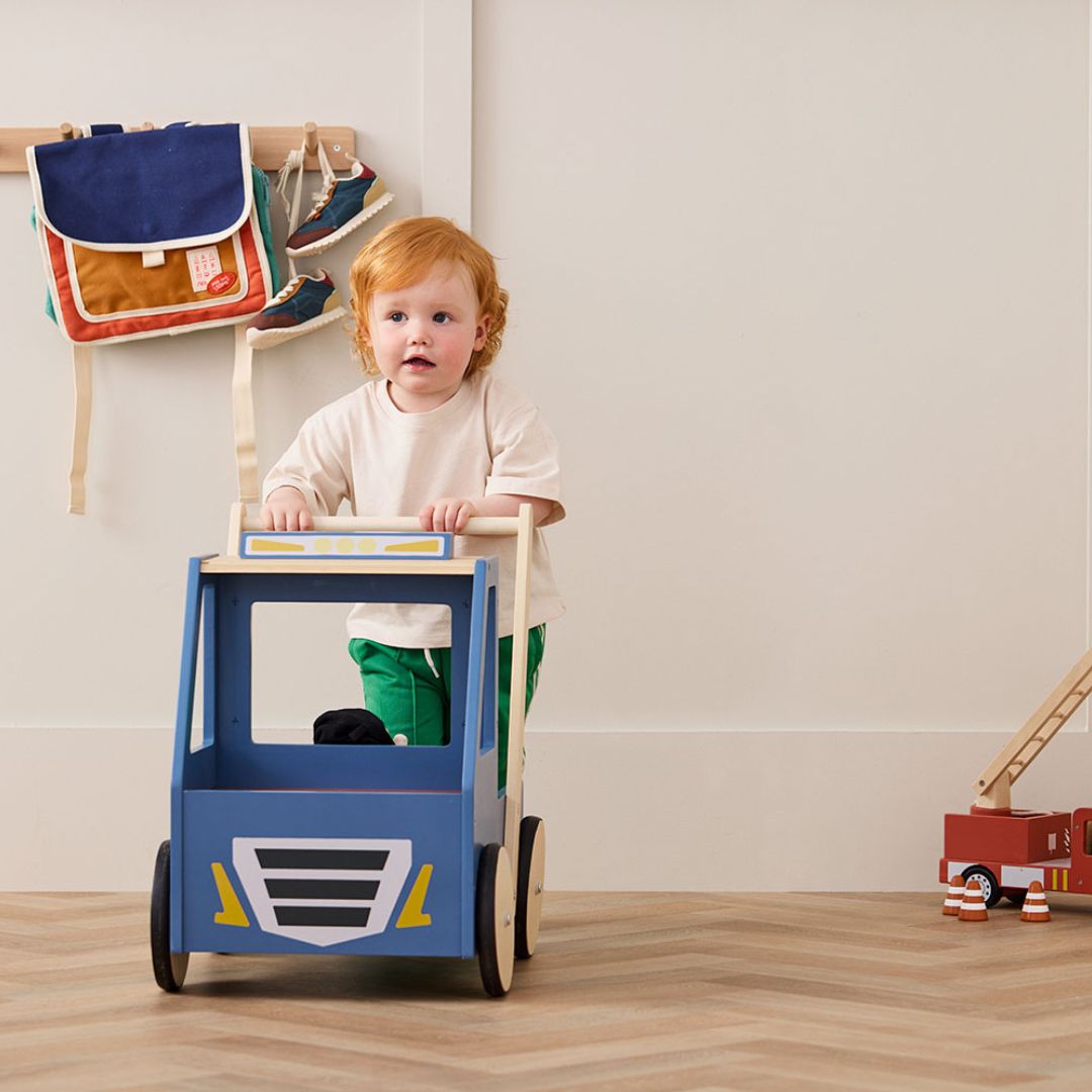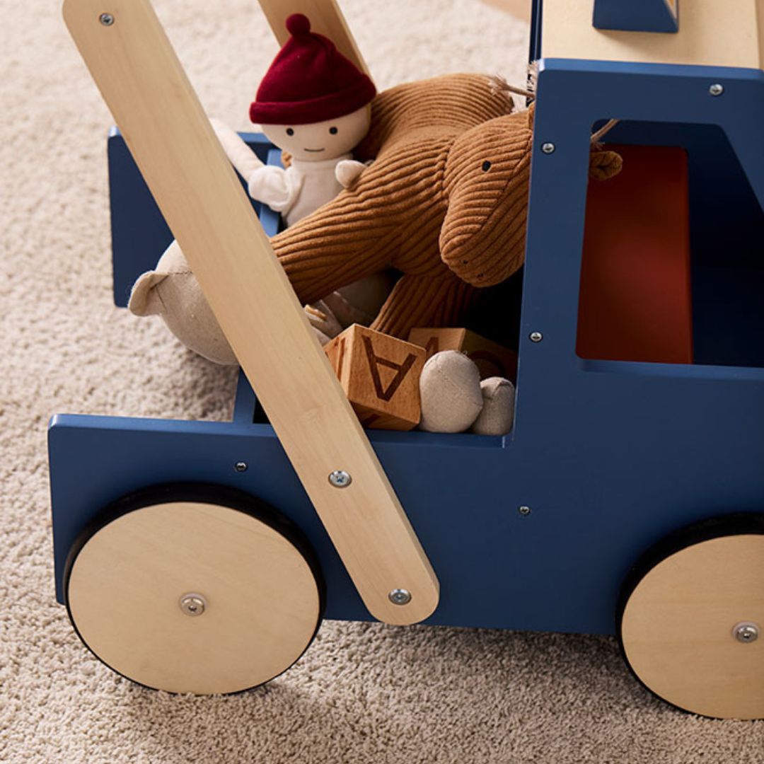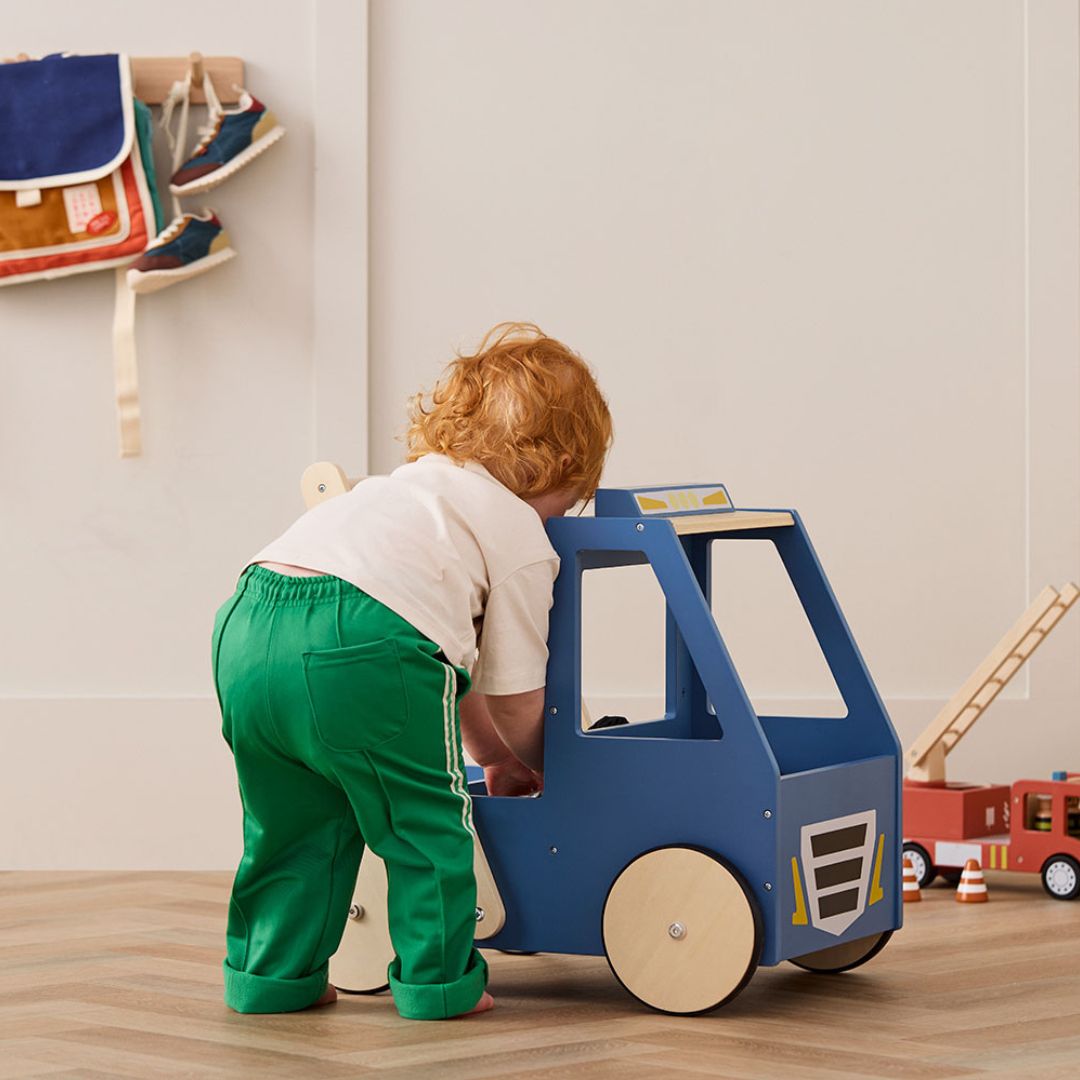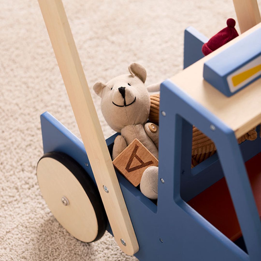 Introducing our Truck walker, perfect for toddlers beginning to walk and convenient for extended playtime. Ideal for toddlers from their first steps and equally engaging for older children, who can use it to transport their soft toys and more. This stable and sturdy walker includes a brake function for safe learning steps. Plus, there’s room in the cabin for Teddy to join the adventure! Rengör med fuktig trasa. Torka torrt med en ren trasa. Kontrollera regelbundet att alla skruvar är väl åtdragna, samt att alla delar är intakta.