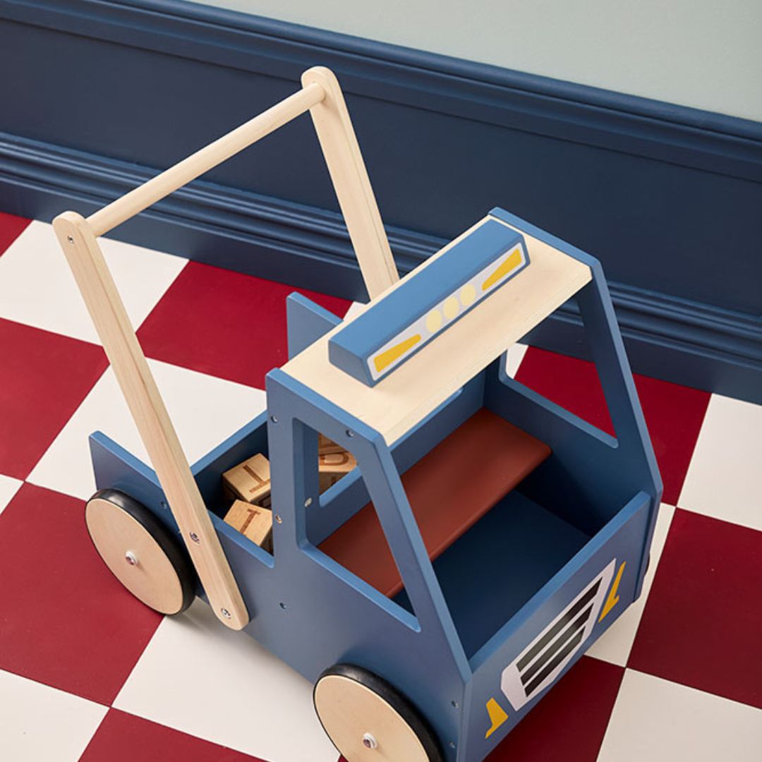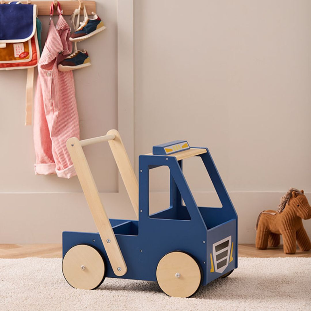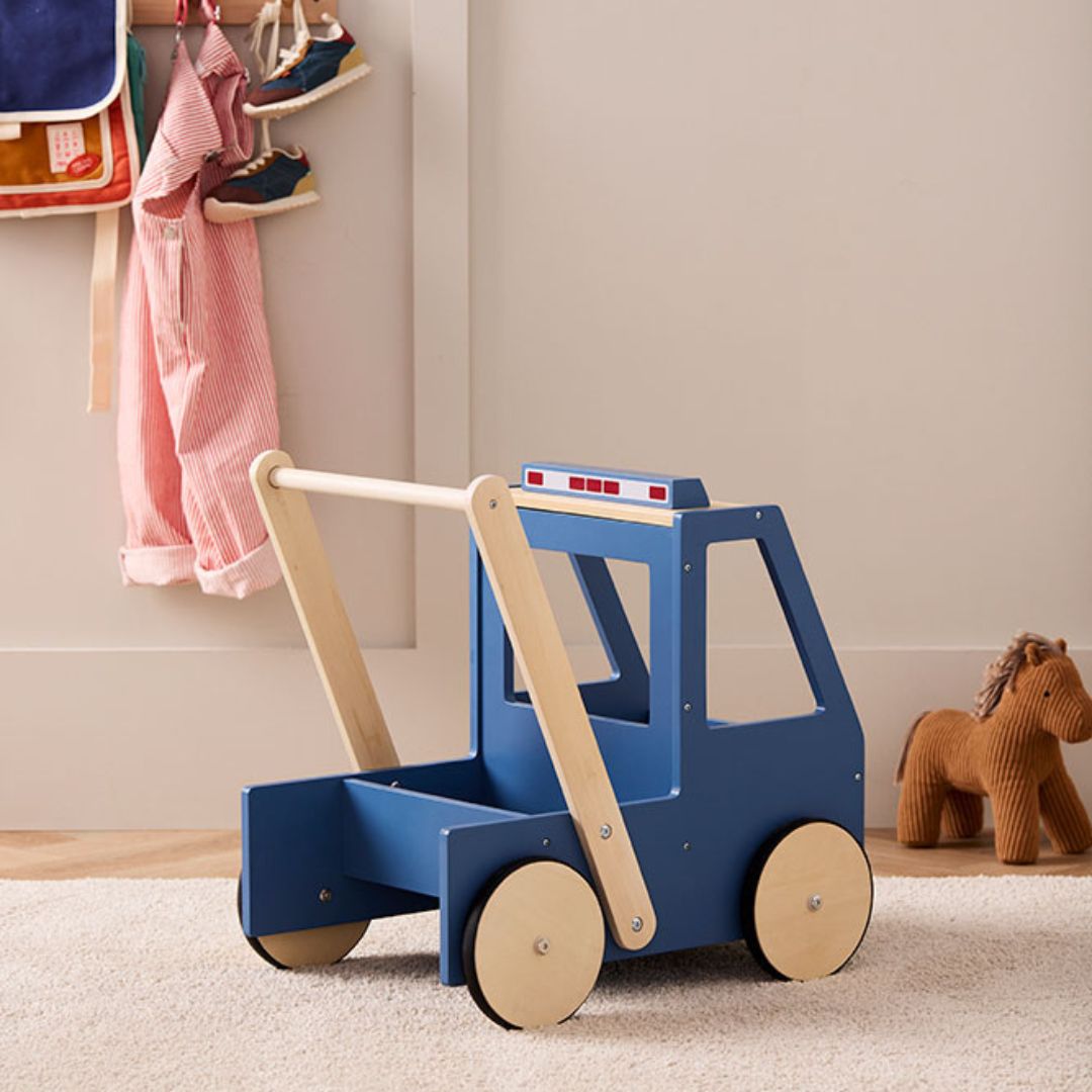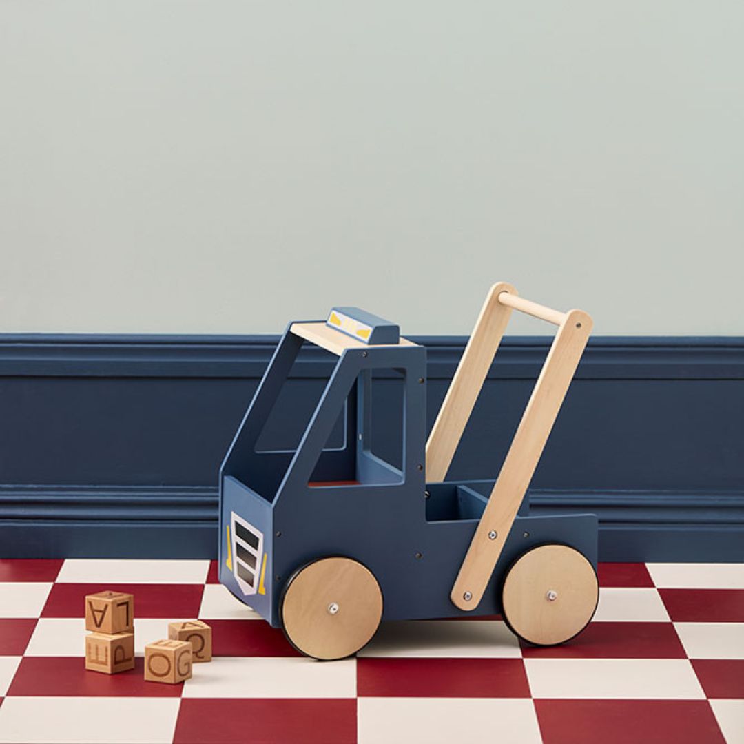 Introducing our Truck walker, perfect for toddlers beginning to walk and convenient for extended playtime. Ideal for toddlers from their first steps and equally engaging for older children, who can use it to transport their soft toys and more. This stable and sturdy walker includes a brake function for safe learning steps. Plus, there’s room in the cabin for Teddy to join the adventure! Rengör med fuktig trasa. Torka torrt med en ren trasa. Kontrollera regelbundet att alla skruvar är väl åtdragna, samt att alla delar är intakta.