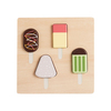 Ett pussel med 4 färgglada glassar i plywood och bok. Utvecklar koordination mellan hand och öga. Ger våra allra minsta goda chanser att bli riktigt duktiga problemlösare!