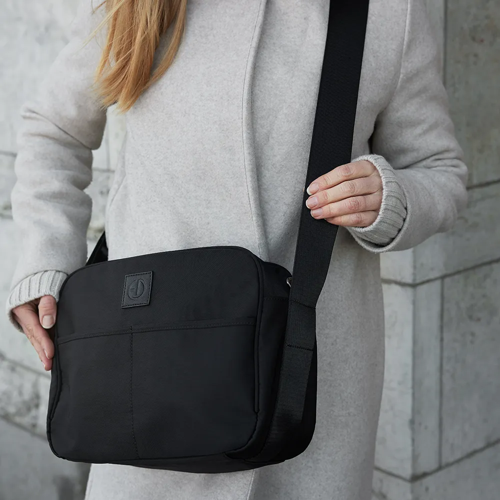 Väskan har flera fickor som är specialdesignade för blöjor, våtservetter, nycklar, mobiltelefon och till och med en termosficka för att hålla nappflaskan varm eller din dryck kall. En mjukt vadderad skötbädd ingår, samt remmar som gör att du enkelt kan fästa väskan på barnvagnens handtag.