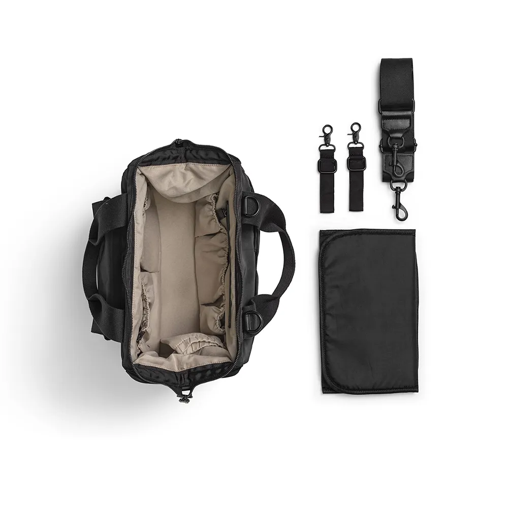 För extra bekvämlighet medföljer en mjuk skötbädd, och med hjälp av barnvagnskrokar med kardborreband kan ni enkelt hänga upp väskan på barnvagnen.