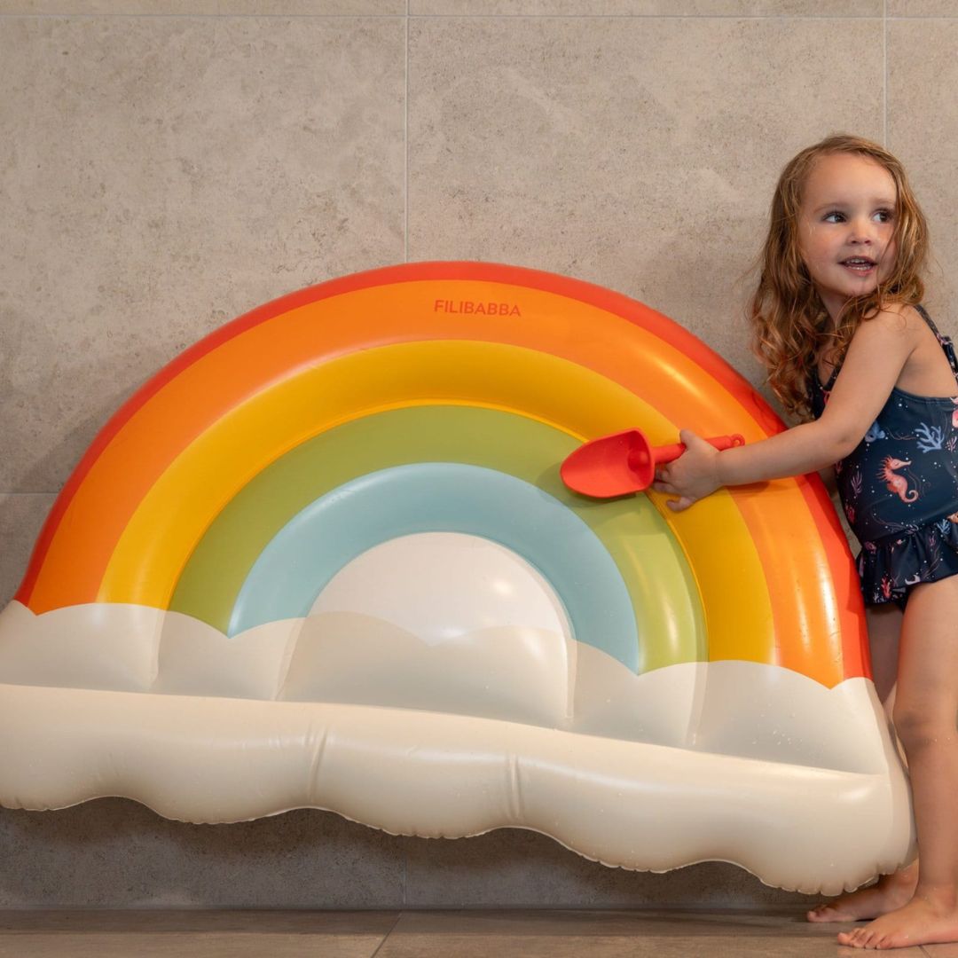 Vem drömmer inte om att guppa avslappnat i poolen på en gigantisk färgglad regnbåge och fluffiga moln? Med denna regnbågsformade badmadrass i starka färger kommer du säkert att tillföra lite magi till varje pool.