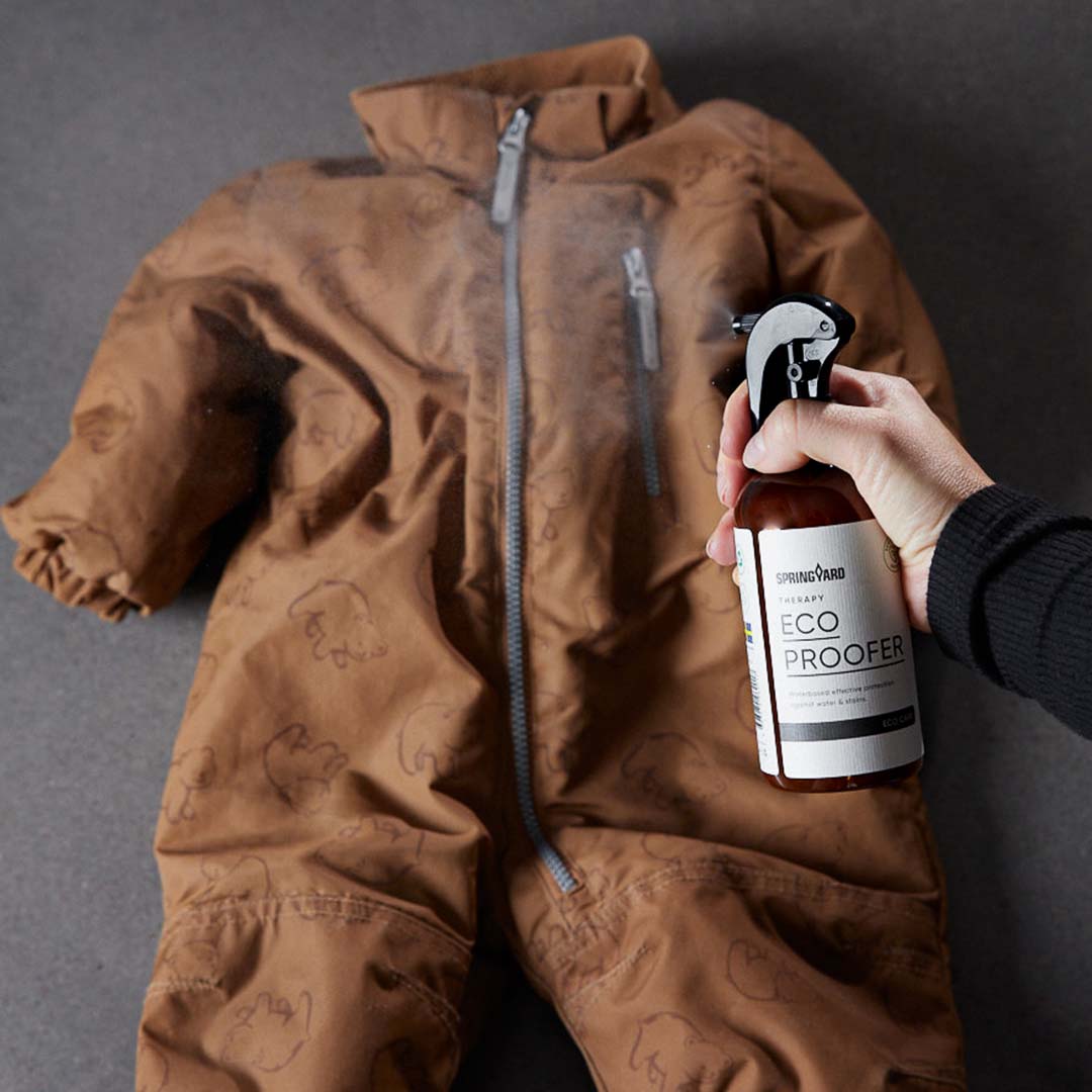 Eco Proofer Spray från Springyard är en miljövänlig impregneringsspray för maximalt skydd mot vatten och smuts. Perfekt som ett extra lagerskydd på barnvagnen/åkpåsen eller barens ytterkläder. Eco Proofer ger ett starkt och hållbart skydd utan att påverka andningsförmågan. Kan appliceras på de flesta material, såsom läder, textil, mocka/nubuck, syntet och Tex-material.
