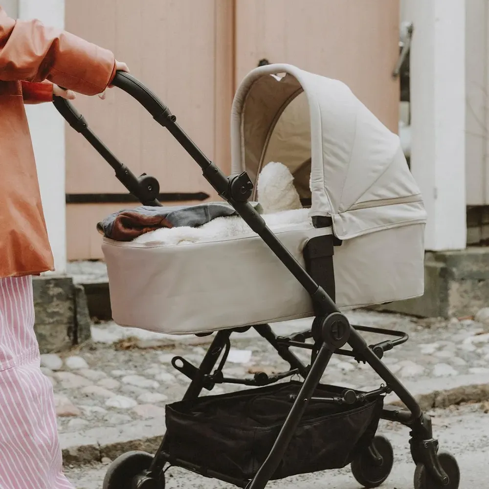 Gör din Elodie MONDO Stroller till den enda barnvagnen du behöver med en separat liggdel. Denna liggdel fästs smidigt och enkelt på vagnens chassi med de medföljande adaptrarna, vilket skapar en mysig och säker plats anpassad för nyfödda bebisar upp till omkring 6 månaders ålder.