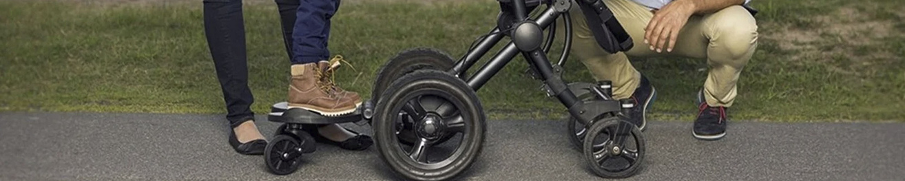 När det är dags för den där åldern då det äldsta barn gärna går på egen hand, men ändå blir trött då och då, eftersom benen inte är fullt så långa som på en vuxen än, då är det smidigt och praktiskt att investera i en ståbräda att fästa på småsyskonets vagn. På så sätt kan storebror eller storasyster gå själv, men ändå ställa sig och hålla fast när det börjar bli lite kinkigt, alternativt när mamma eller pappa vill att det ska gå lite fortare framåt eller att det ska vara lite enklare att ha koll på var barnet är. Ståbrädor i olika former och designer En ståbräda behöver inte bara vara praktisk, den kan även se rolig ut för barnet, vilket de ståbrädor vi har här på Pyret & Snäckan verkligen visar. Här finns även otroligt praktiska stå- och sittbrädor, där det även finns en liten sittplats för barnet monterad på ståbrädan. Då kan man som liten till och med välja att sitta ned en stund när tröttheten kommer över en. Ståbrädor är även praktiska på så sätt att de kan fällas in och enkelt monteras bort från vagnen, utifall att de skulle vara i vägen.