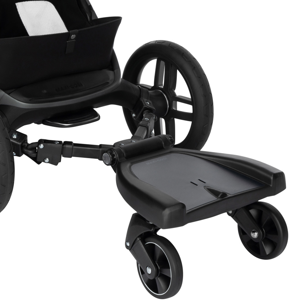 Med Maxi-Cosi Hop-on board blir familjens äventyr ännu härligare. Fäst den enkelt på din barnvagn så att storasyskonet kan hänga med – antingen ståendes som liten medpilot eller sittandes för en välförtjänt paus. Perfekt för nyfikna små utforskare som ibland behöver vila benen, medan lillasyskonet slumrar i vagnen.