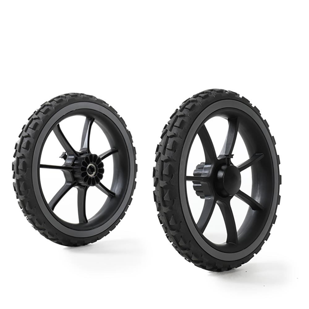 För dig som går med barnvagn i annan terräng än just på asfaltvägar är terränghjul en fantastisk uppfinning. Det finns såklart terränghjul med olika grad av hårdhet, men de flesta är framtagna för att klara av promenader på kuperade skogsstigar, sandstränder, och andra mer krävande underlag. Terränghjulen gör också att det blir stabilare att skjuta barnvagnen framåt, vilket känns tryggt för både dig och barnet som sitter i den. Utöver det så är terränghjul såklart också anpassade för att inte få punktering lika lätt som ”vanliga” barnvagnshjul, vilket är bra när du går på ojämna underlag där det till exempel kan ligga vassa stenar. Byt till terränghjul på ett kick Många av dagens vagnar kommer med utbytbara hjul, vilket är mycket praktiskt om man till exempel ska gå promenader i terräng, då det kan vara skönare att ha två stabila och låsta hjulset istället för ett. Att det idag är mycket smidigt att byta ut hjulen gör det enkelt att anpassa vagnen efter vad du ska göra idag - är det dags för korvgrillning i skogen så byter du bara ut de vanliga hjulen till terränghjul, och det på bara några sekunder!