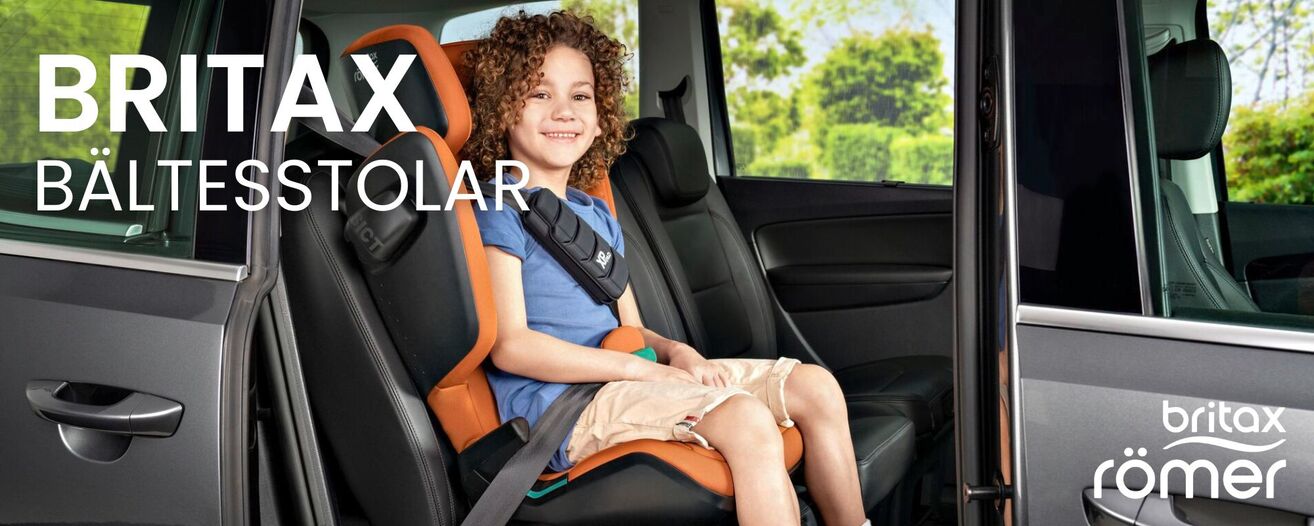 Med en framåtvänd bilbarnstol från Britax Römer kan du lita på att säkerheten är satt som högsta prioritet. En bältesstol används från ca 4 års ålder på ditt barn upp till 12 år. En bältesstol är ett säkrare alternativ än bälteskudde och ger ett större skydd för ditt barn vid en kollision. Vissa av bilbarnstolarna från Britax Römer har fler säkerhetsfunktioner såsom secureguard eller XP-pad som håller säkerhetsbältet på rätt plats och minskar trycket mot bröstet vid en kollision eller hastig inbromsning. Kika på vårt utvalda sortiment från Britax.