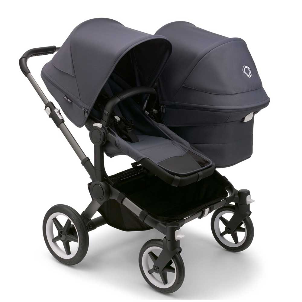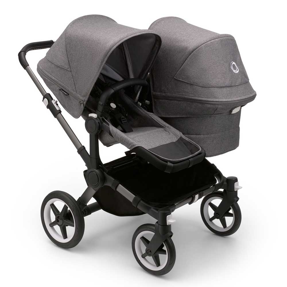 Bugaboo Donkey 5 Duo är barnvagnen för syskon med olika åldrar som vill sitta bredvid varandra. Den tar sig enkelt genom vanliga dörröppningar och är lätt att manövrera med en hand på alla underlag. Med rymlig varukorg, justerbara och vändbara sittdelar samt stor solskärm är den en flexibel och trygg lösning som växer med familjen.