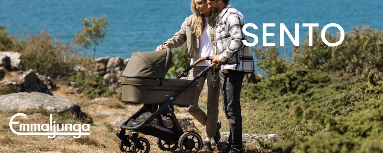 SENTO är en ny och innovativ barnvagn från Emmaljunga som är lättare och smidigare än någonsin tidigare. Den har en ny fyrhjulsfjädring med justerbar bakfjädring, vilket gör att ditt barn kan vila lugnt även på ojämna vägar. Chassit är tillverkat av HYDRO REDUXA®-aluminium med låg koldioxidpåverkan och kan fällas ihop till ett kompakt paket på bara några sekunder.