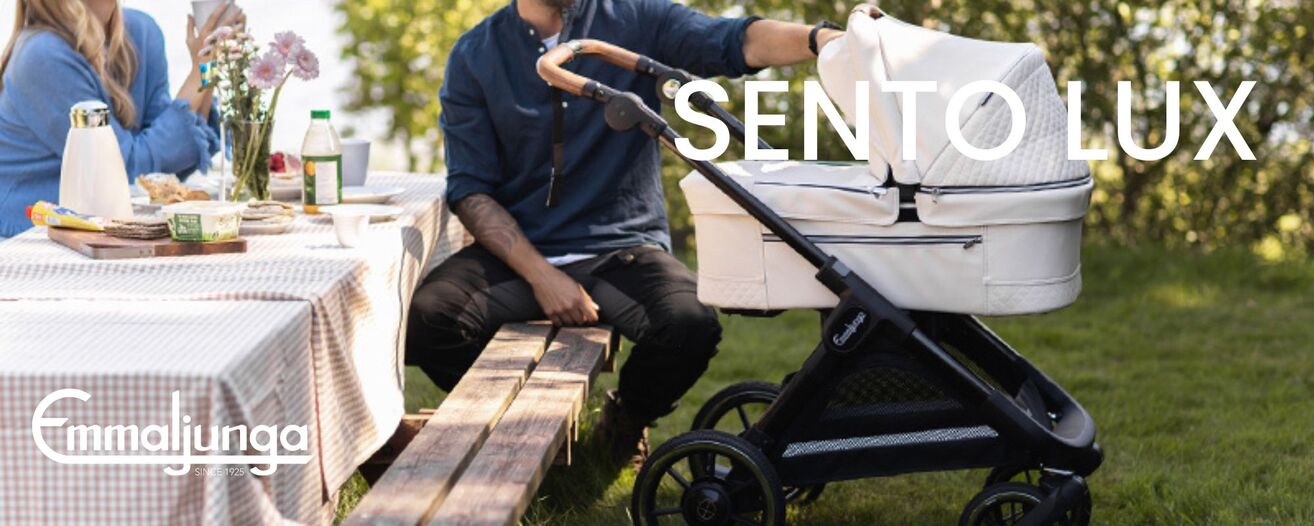 Emmaljunga SENTO LUX är den kompletta barnvagnen med en enastående robust och stabil konstruktion. Den har en mjuk fyrhjulsfjädring med justerbar bakfjädring, vilket gör att ditt barn kan njuta av lugna och bekväma promenader, oavsett om du bor i staden eller på landet. SENTO LUX har dessutom en rad exklusiva detaljer och sömnad som ger den en lyxig och elegant look.