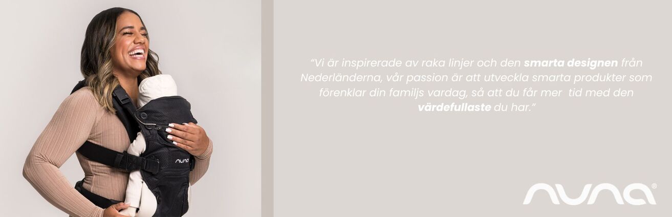 Nunas exklusiva sortiment av barnvagnar, bilbarnstolar och babytillbehör som är särskilt utformade för den moderna familjen. Nuna är ett av de kändare varumärkena i världen och strävar efter att erbjuda innovativa och bekväma lösningar för föräldrar som vill upptäcka världen med sina små. Populära produkter från varumärket är bland annat Nuna stroller Demi Grow, Nuna Demi Next och Nunas babyskydd Pipa eller Urbn (babyskydd och bilbarnstolar).
